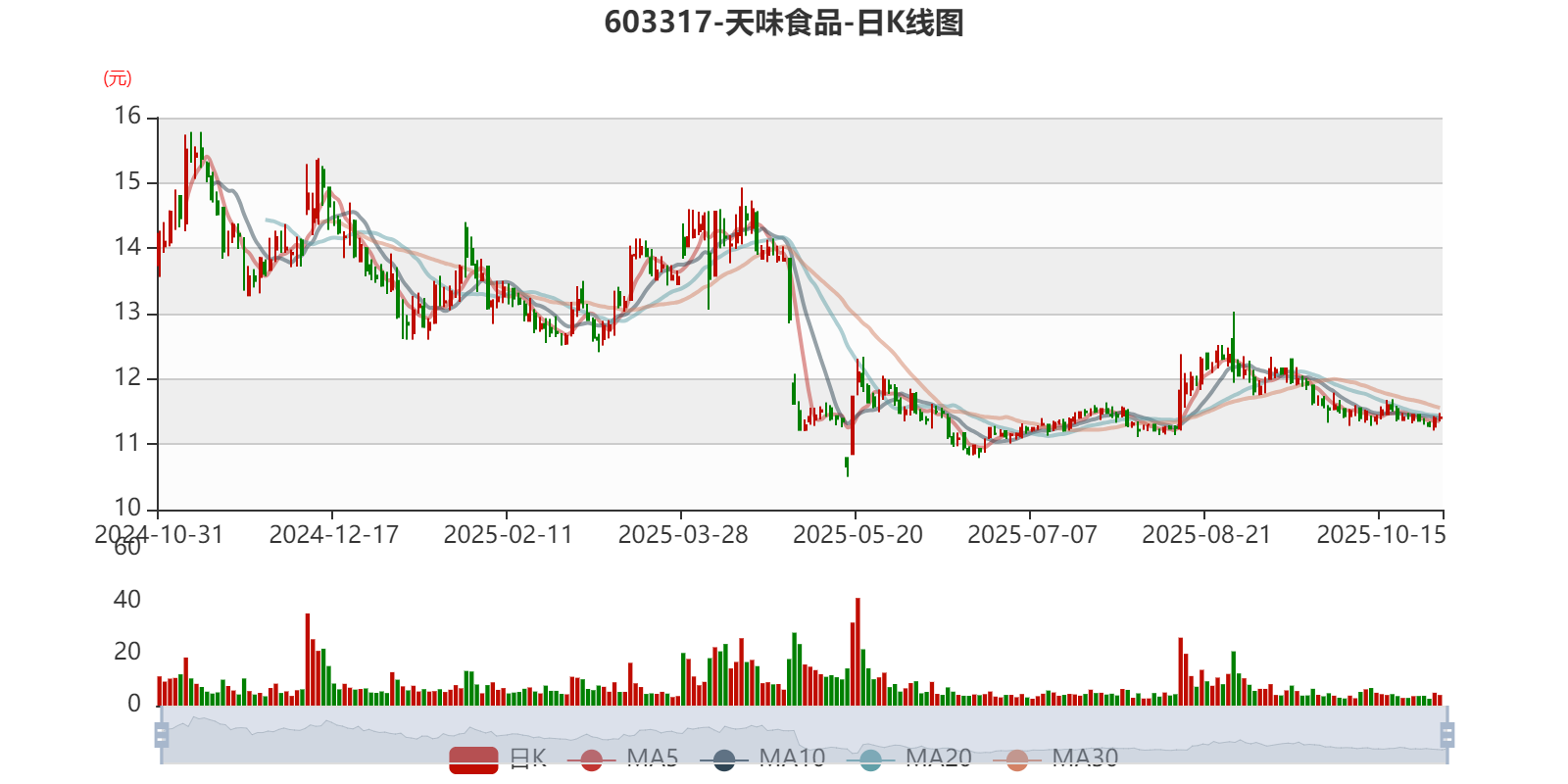 以10月30日收盘价计算,天味食品目前市盈率(TTM)约为20.79倍,市净率(LF)约2.77倍,市销率(TTM)约3.45倍。