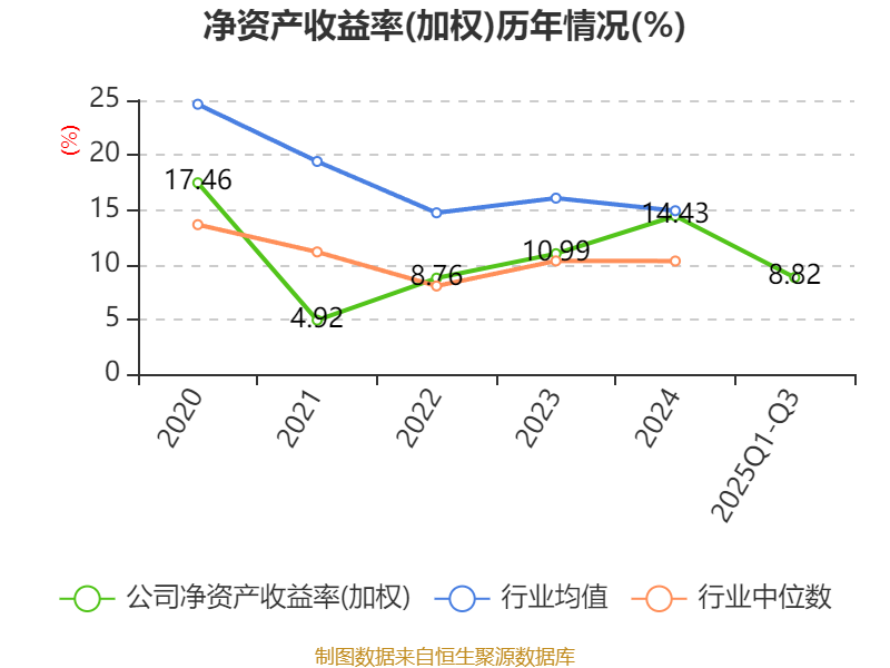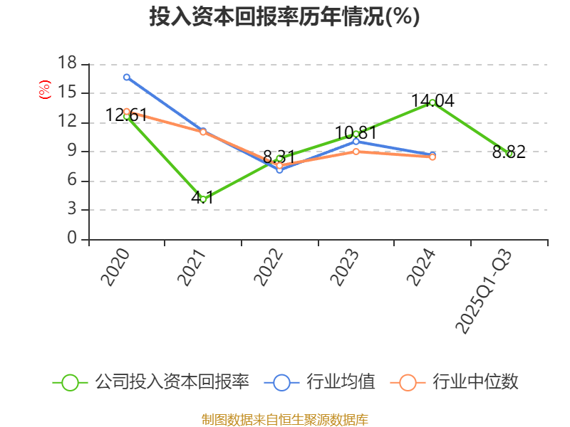 盈利能力方面, 2025年前三季度公司加权平均净资产收益率为8.82%,同比下降1.33个百分点。公司2025年前三季度投入资本回报率为8.82%,较上年同期下降1.11个百分点。