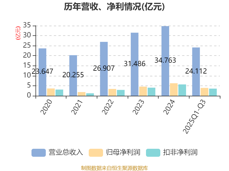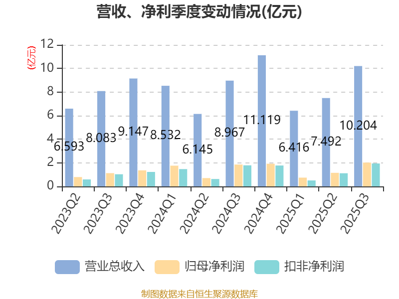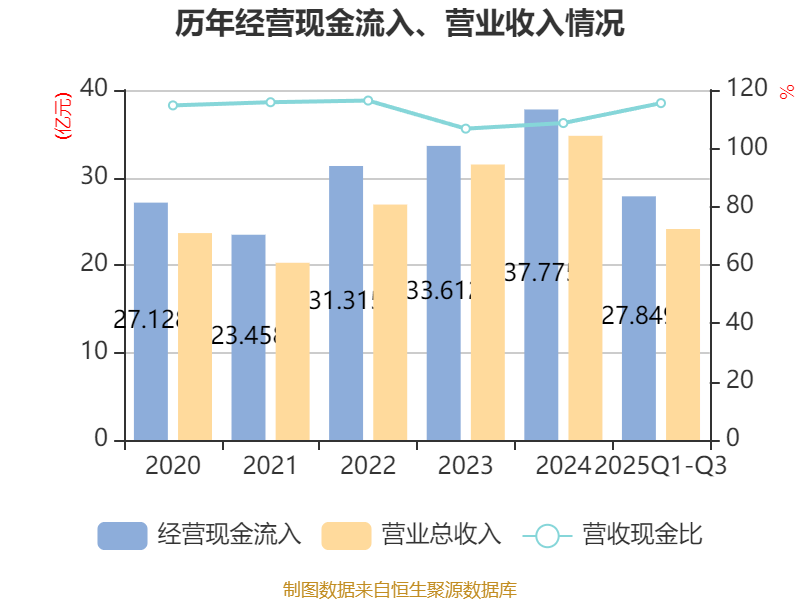 2025年前三季度,公司经营活动现金流净额为5.28亿元,同比下降11.94%;筹资活动现金流净额-6.27亿元,同比减少1.97亿元;投资活动现金流净额7602.74万元,上年同期为-3.46亿元。