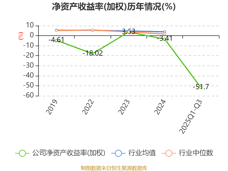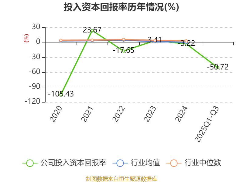 盈利能力方面, 2025年前三季度公司加权平均净资产收益率为-51.7%,同比下降46.82个百分点。公司2025年前三季度投入资本回报率为-50.72%,较上年同期下降45.78个百分点。