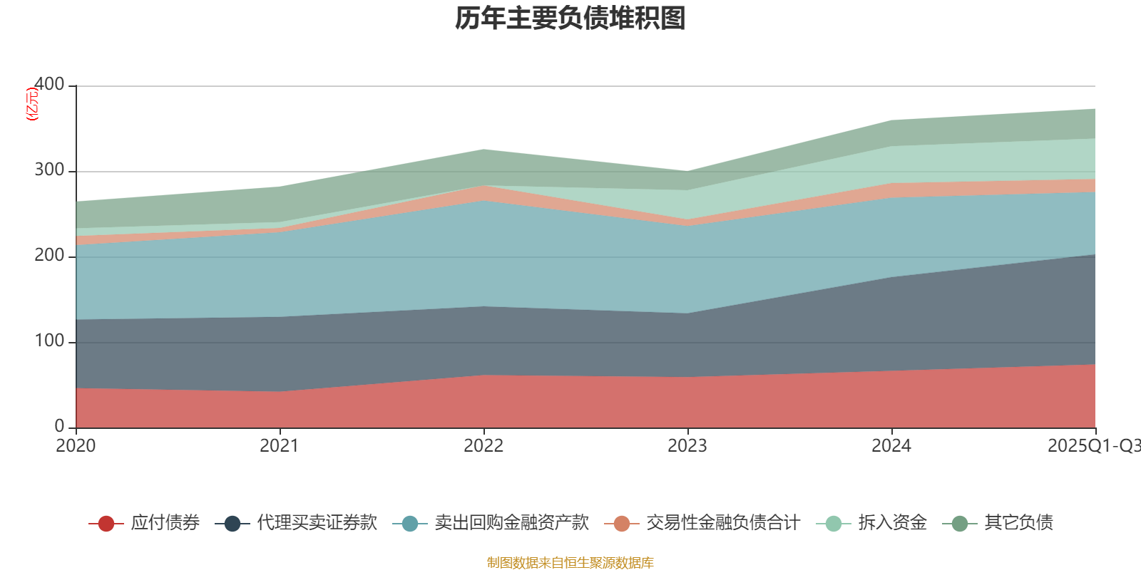 负债重大变化方面,截至2025年三季度末,公司卖出回购金融资产款较上年末减少21.63%,占公司总资产比重下降4.35个百分点;代理买卖证券款较上年末增加17.46%,占公司总资产比重上升2.67个百分点;应付短期融资款较上年末增加115.44%,占公司总资产比重上升1.04个百分点;应付债券较上年末增加11.33%,占公司总资产比重上升0.87个百分点。
