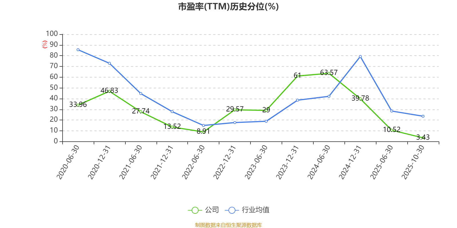 市盈率、市净率为负时,不显示当期分位数,会导致折线图中断。