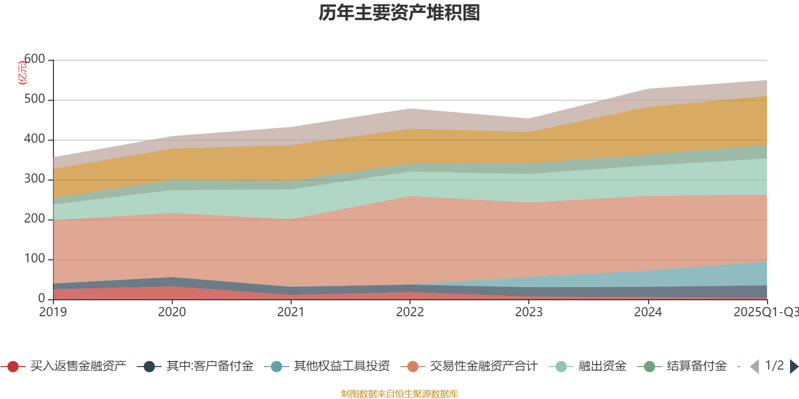 资产重大变化方面,截至2025年三季度末,公司交易性金融资产合计较上年末减少10.31%,占公司总资产比重下降4.9个百分点;其他权益工具投资较上年末增加44.87%,占公司总资产比重上升3.05个百分点;融出资金较上年末增加19.49%,占公司总资产比重上升2.13个百分点;其他债权投资较上年末增加82.81%,占公司总资产比重上升1.33个百分点。