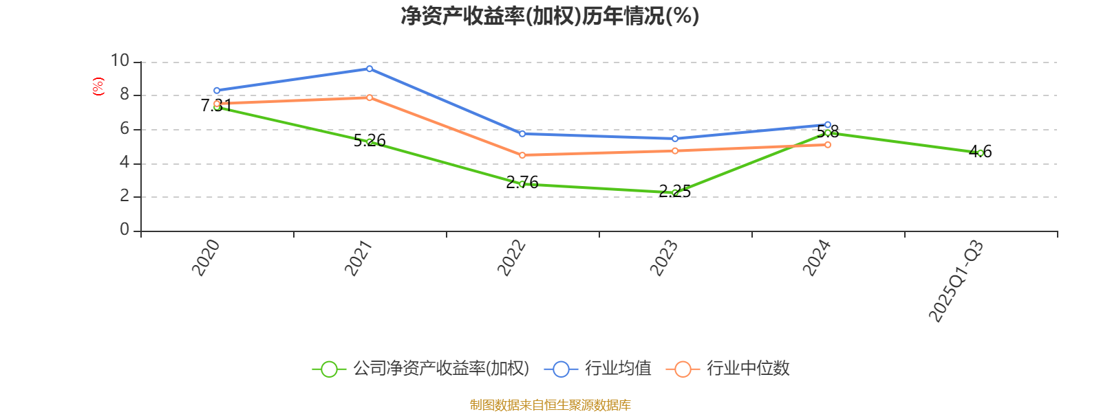 盈利能力方面, 2025年前三季度公司加权平均净资产收益率为4.6%,同比上升0.4个百分点。