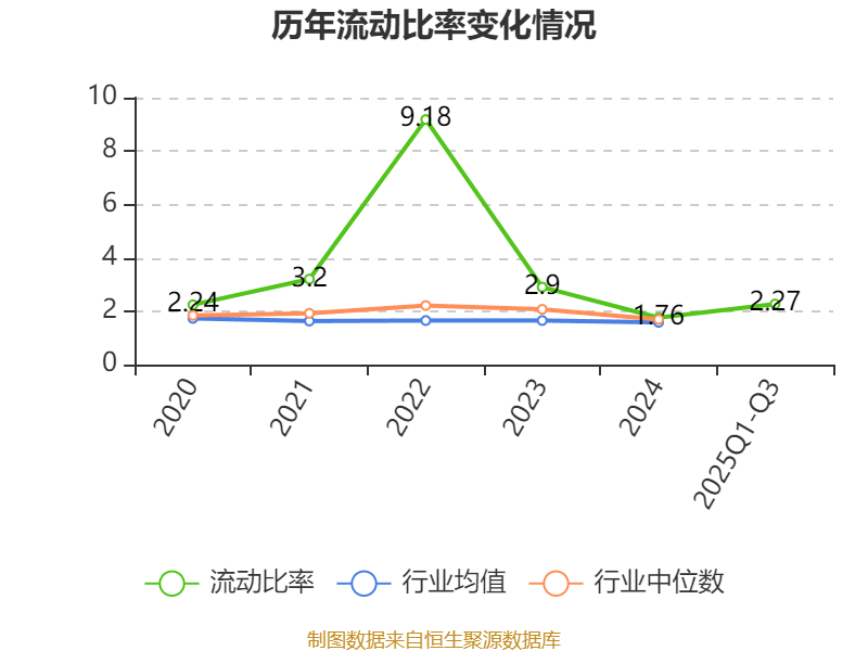 2025年前三季度,公司流动比率为2.27,速动比率为1.71。