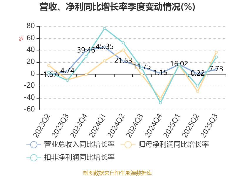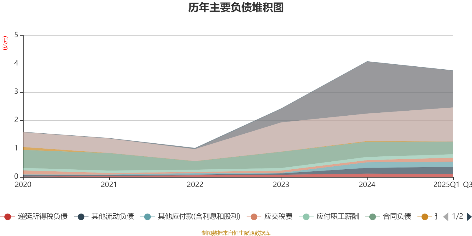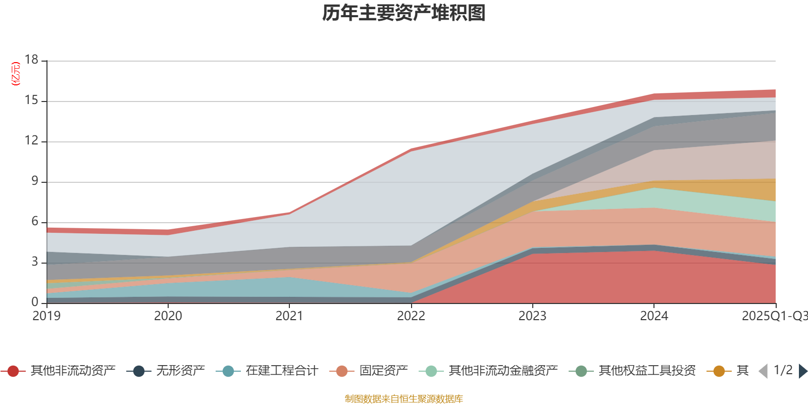 资产重大变化方面,截至2025年三季度末,公司其他流动资产较上年末增加219.17%,占公司总资产比重上升7.21个百分点;其他非流动资产较上年末减少27.23%,占公司总资产比重下降7.14个百分点;一年内到期的非流动资产较上年末增加25.51%,占公司总资产比重上升3.34个百分点;交易性金融资产合计较上年末减少72.15%,占公司总资产比重下降3.1个百分点。