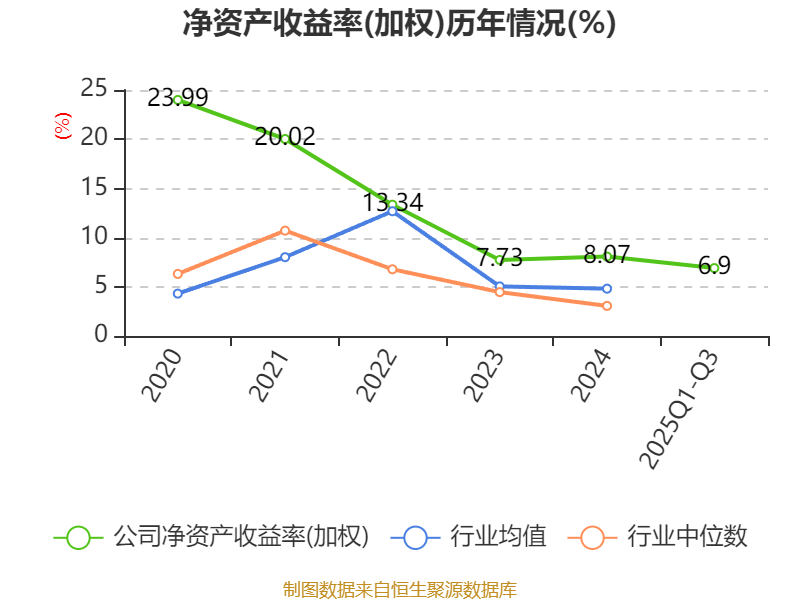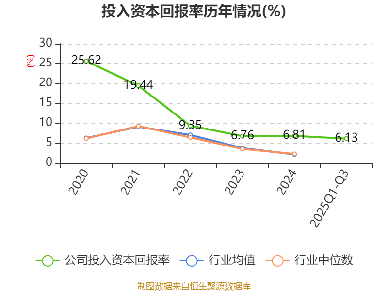 盈利能力方面, 2025年前三季度公司加权平均净资产收益率为6.9%,同比下降0.25个百分点。公司2025年前三季度投入资本回报率为6.13%,较上年同期下降0.04个百分点。