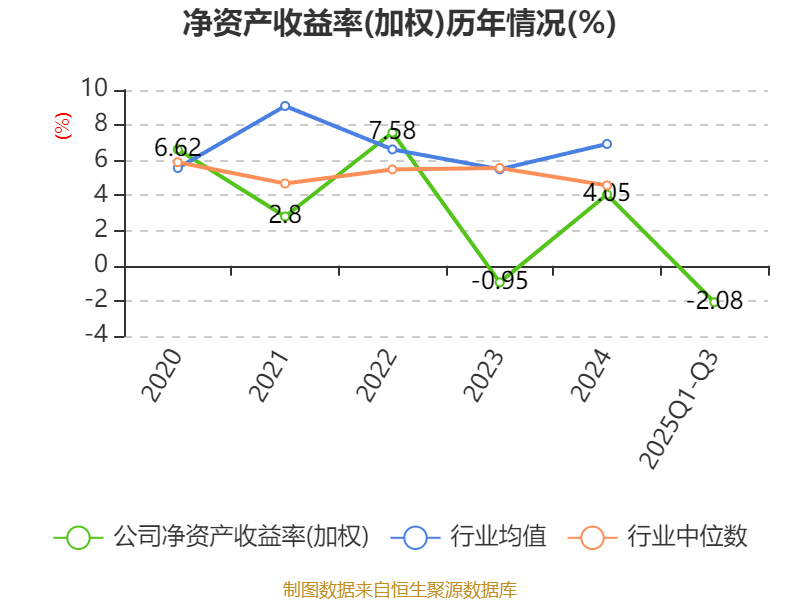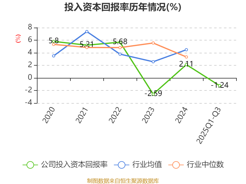 盈利能力方面, 2025年前三季度公司加权平均净资产收益率为-2.08%,同比下降3.65个百分点。公司2025年前三季度投入资本回报率为-1.24%,较上年同期下降1.39个百分点。