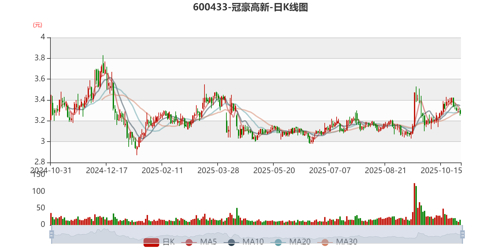 中证智能财讯冠豪高新(600433)10月31日披露2025年第三季度报告。前三季度公司实现营业总收入52.34亿元,同比下降1.94%;归母净利润亏损9432.39万元,上年同期盈利6998.55万元;扣非净利润亏损9638.38万元,上年同期盈利3290.06万元;经营活动产生的现金流量净额为-9.25亿元,上年同期为-2.58亿元;报告期内,冠豪高新基本每股收益为-0.05元,加权平均净资产收益率为-2.08%。