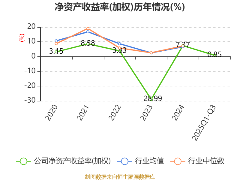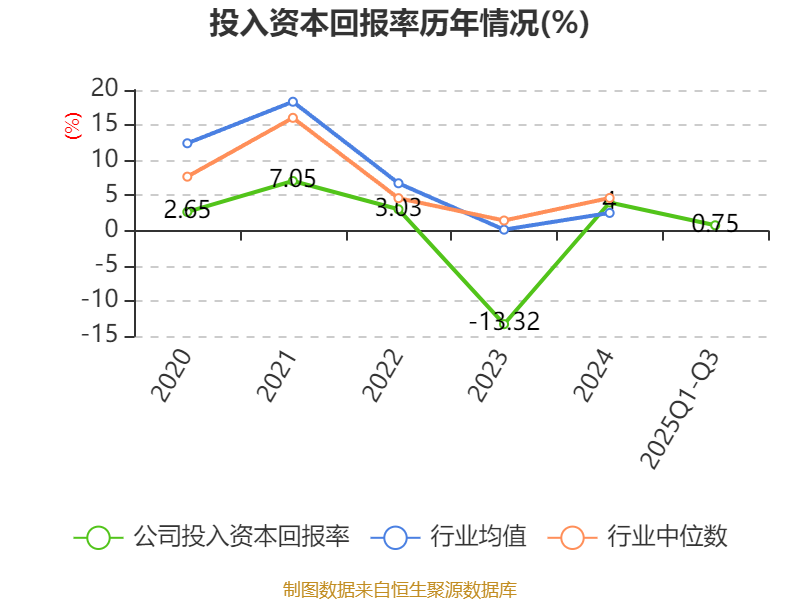 盈利能力方面, 2025年前三季度公司加权平均净资产收益率为0.85%,同比下降8.98个百分点。公司2025年前三季度投入资本回报率为0.75%,较上年同期下降4.02个百分点。
