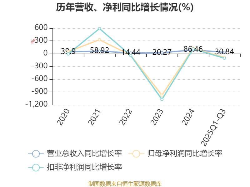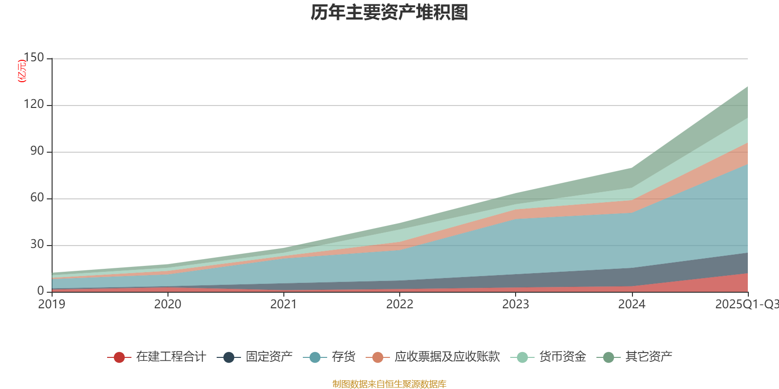 资产重大变化方面,截至2025年三季度末,公司固定资产较上年末增加12.41%,占公司总资产比重下降4.75个百分点;在建工程合计较上年末增加234.62%,占公司总资产比重上升4.53个百分点;其他非流动资产较上年末减少25.19%,占公司总资产比重下降2.15个百分点;货币资金较上年末增加100.8%,占公司总资产比重上升2.11个百分点。