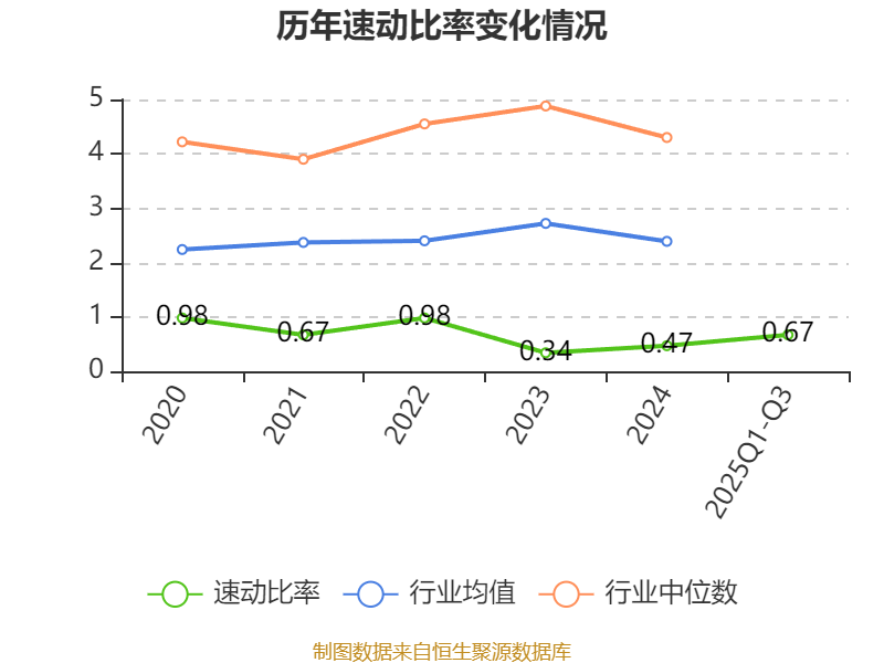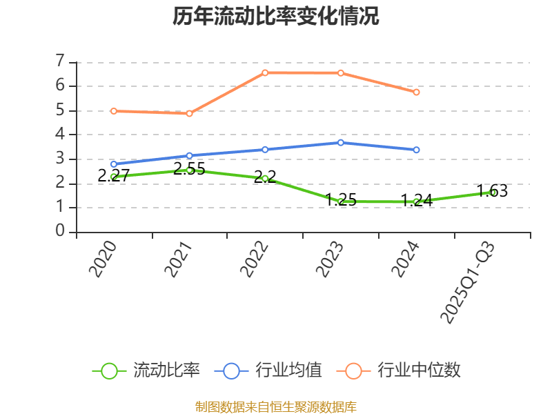2025年前三季度,公司流动比率为1.63,速动比率为0.67。