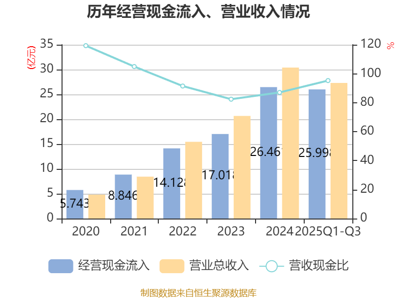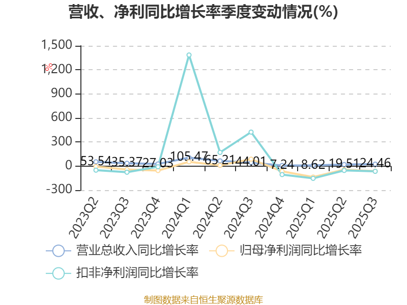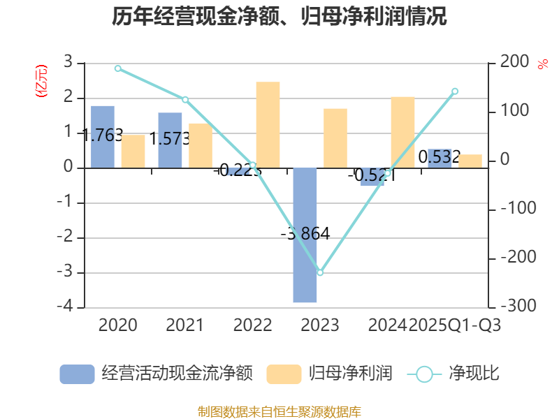 2025年前三季度,公司经营活动现金流净额为5317.38万元,同比增加2.7亿元;筹资活动现金流净额7.04亿元,同比增加4.25亿元;投资活动现金流净额-12.53亿元,上年同期为-3.62亿元。