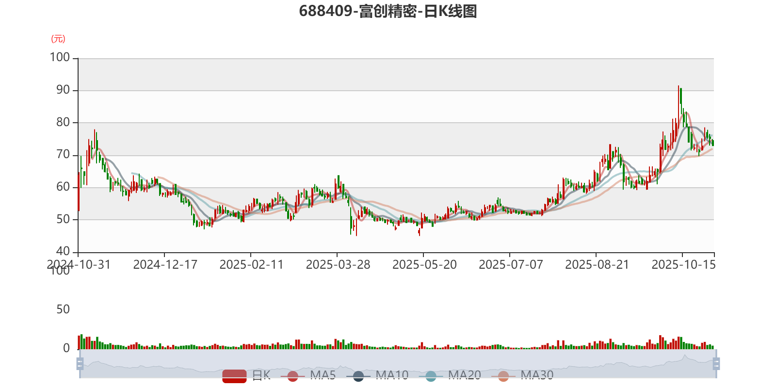 以10月30日收盘价计算,富创精密目前市盈率(TTM)约为443.38倍,市净率(LF)约4.85倍,市销率(TTM)约6.47倍。