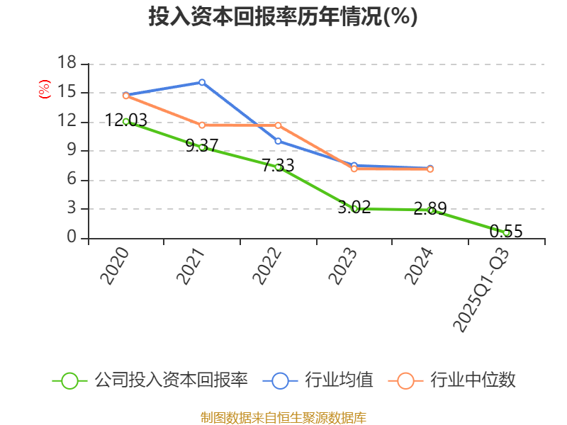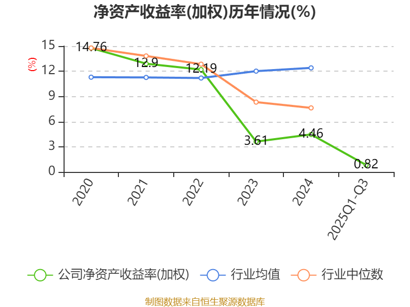 盈利能力方面, 2025年前三季度公司加权平均净资产收益率为0.82%,同比下降3.36个百分点。公司2025年前三季度投入资本回报率为0.55%,较上年同期下降2.35个百分点。