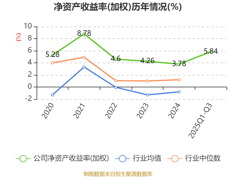 盈利能力方面, 2025年前三季度公司加权平均净资产收益率为5.84%,同比上升0.34个百分点。公司2025年前三季度投入资本回报率为4.79%,较上年同期上升0.72个百分点。