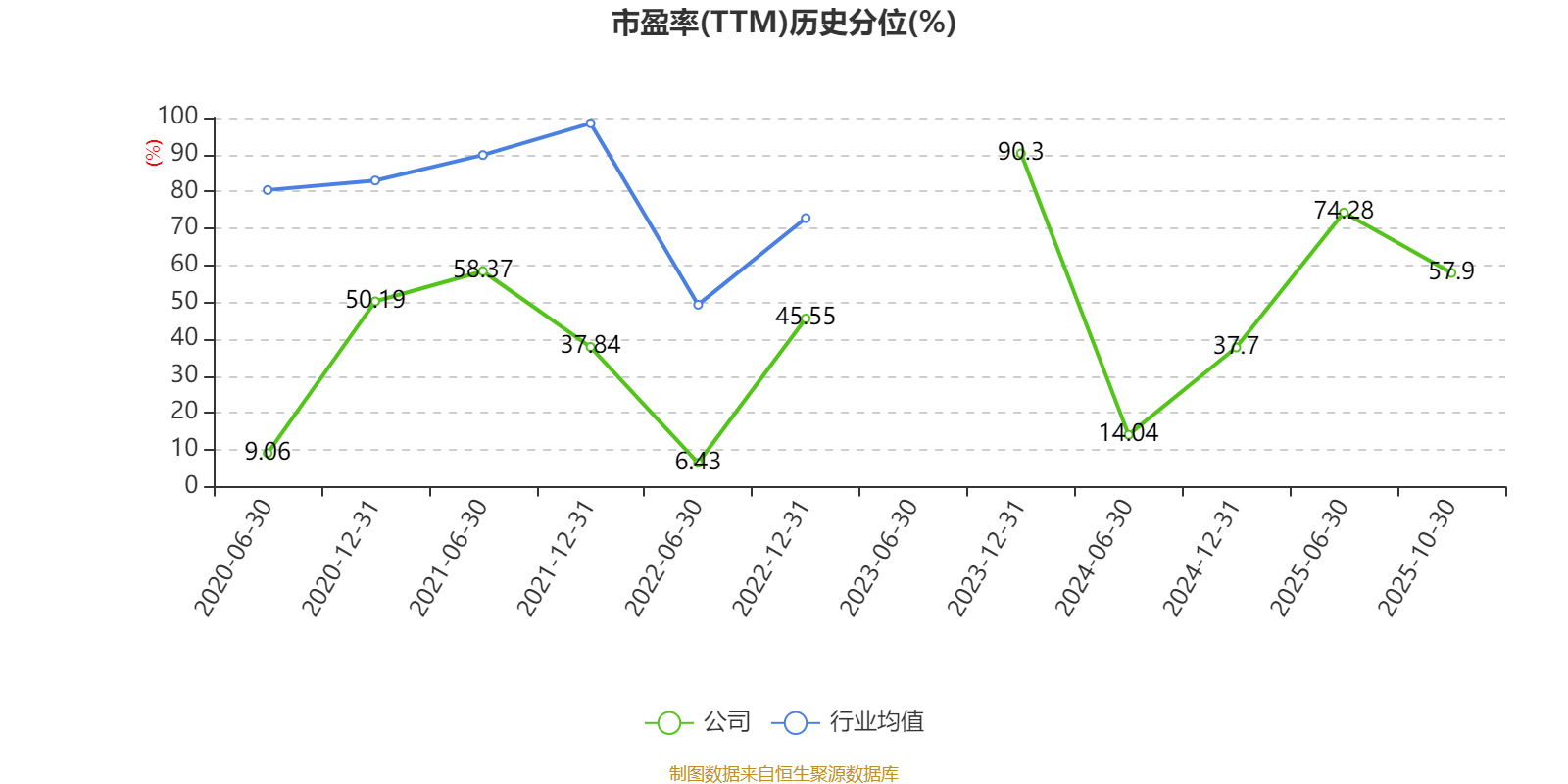 市盈率、市净率为负时,不显示当期分位数,会导致折线图中断。