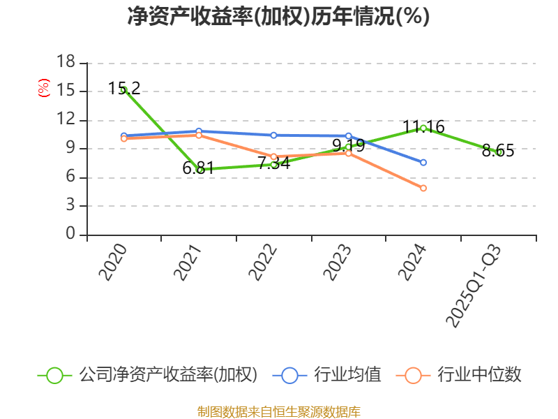 盈利能力方面, 2025年前三季度公司加权平均净资产收益率为8.65%,同比上升0.31个百分点。公司2025年前三季度投入资本回报率为6.1%,较上年同期上升0.85个百分点。