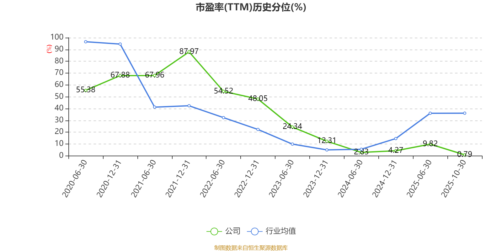 市盈率、市净率为负时,不显示当期分位数,会导致折线图中断。
