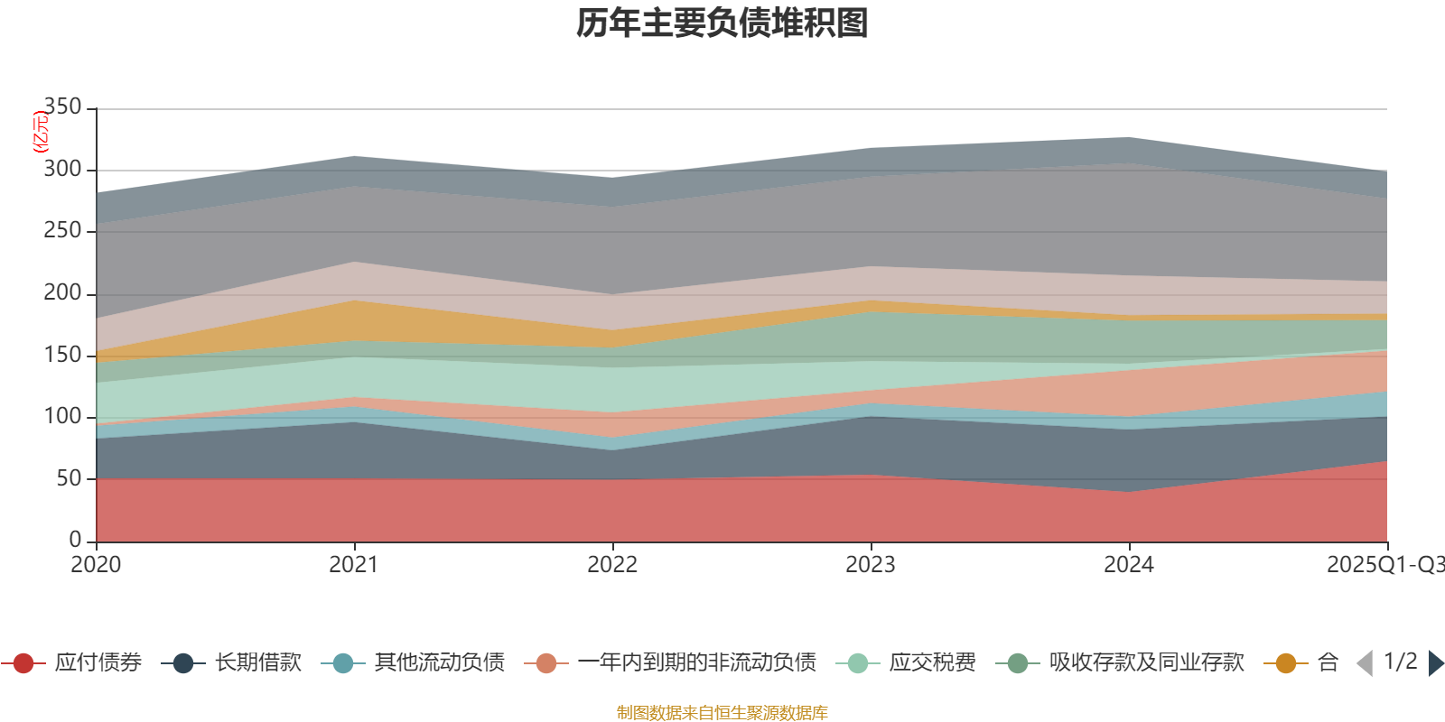 负债重大变化方面,截至2025年三季度末,公司应付债券较上年末增加62.42%,占公司总资产比重上升5.59个百分点;短期借款较上年末减少26.22%,占公司总资产比重下降4.98个百分点;长期借款较上年末减少28.5%,占公司总资产比重下降3.02个百分点;吸收存款及同业存款较上年末减少32.85%,占公司总资产比重下降2.41个百分点。