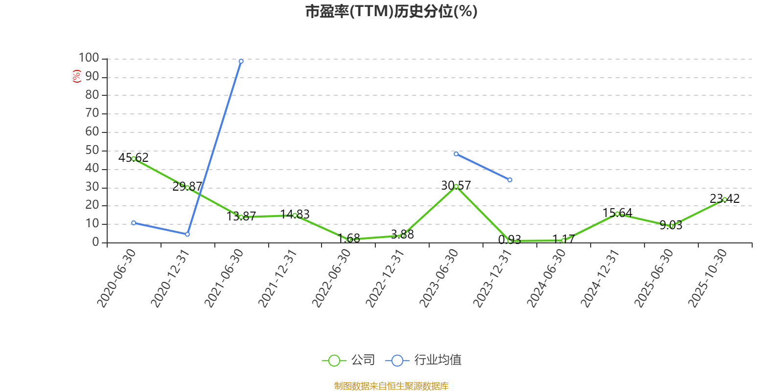 市盈率、市净率为负时,不显示当期分位数,会导致折线图中断。