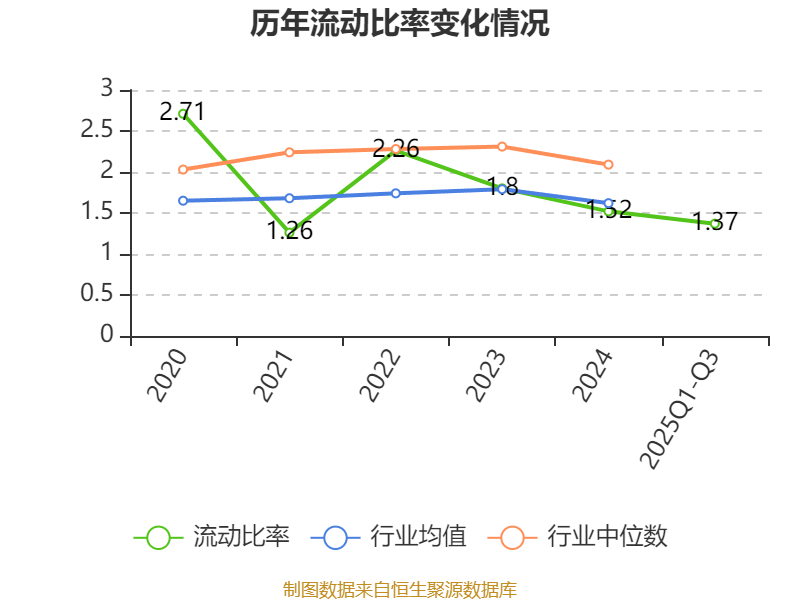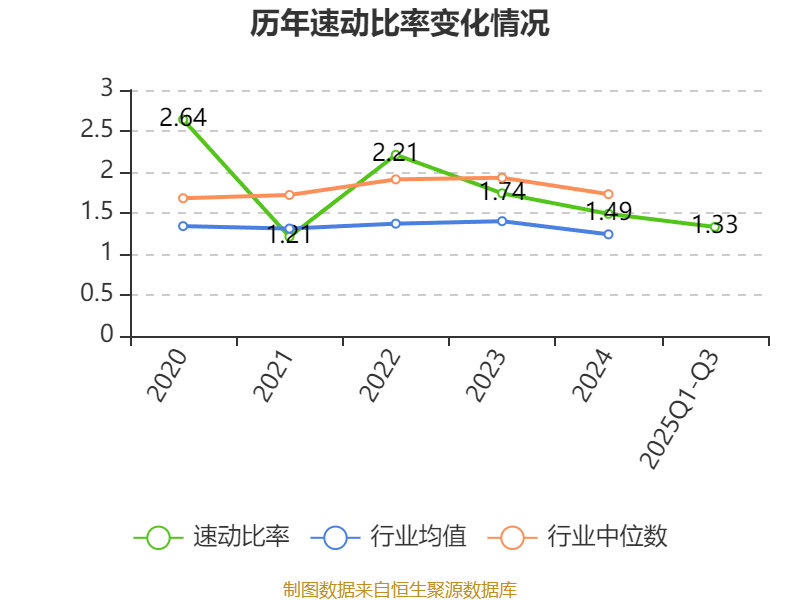 2025年前三季度,公司流动比率为1.37,速动比率为1.33。