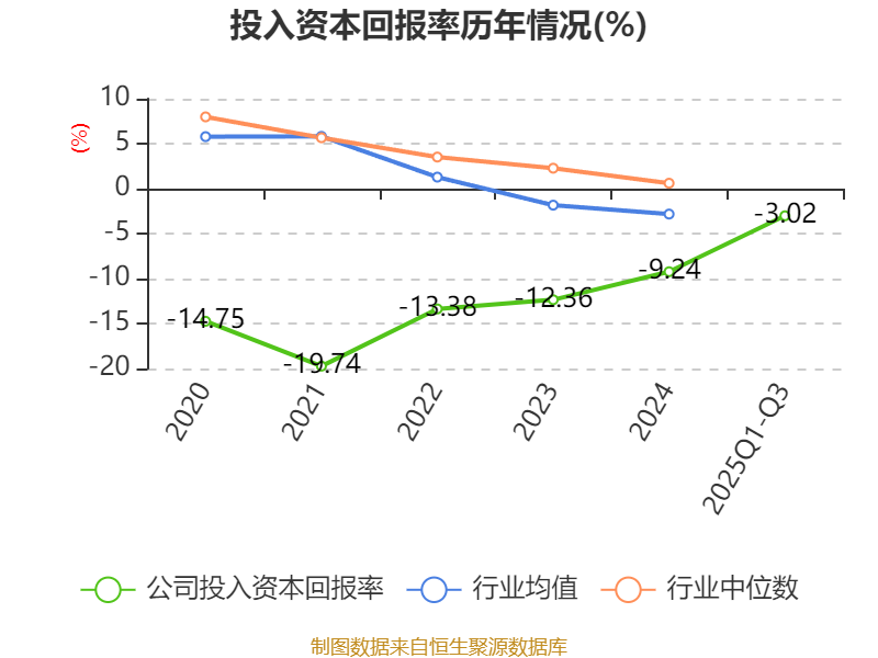 盈利能力方面, 2025年前三季度公司加权平均净资产收益率为-3.52%,同比上升2.96个百分点。公司2025年前三季度投入资本回报率为-3.02%,较上年同期上升3.22个百分点。