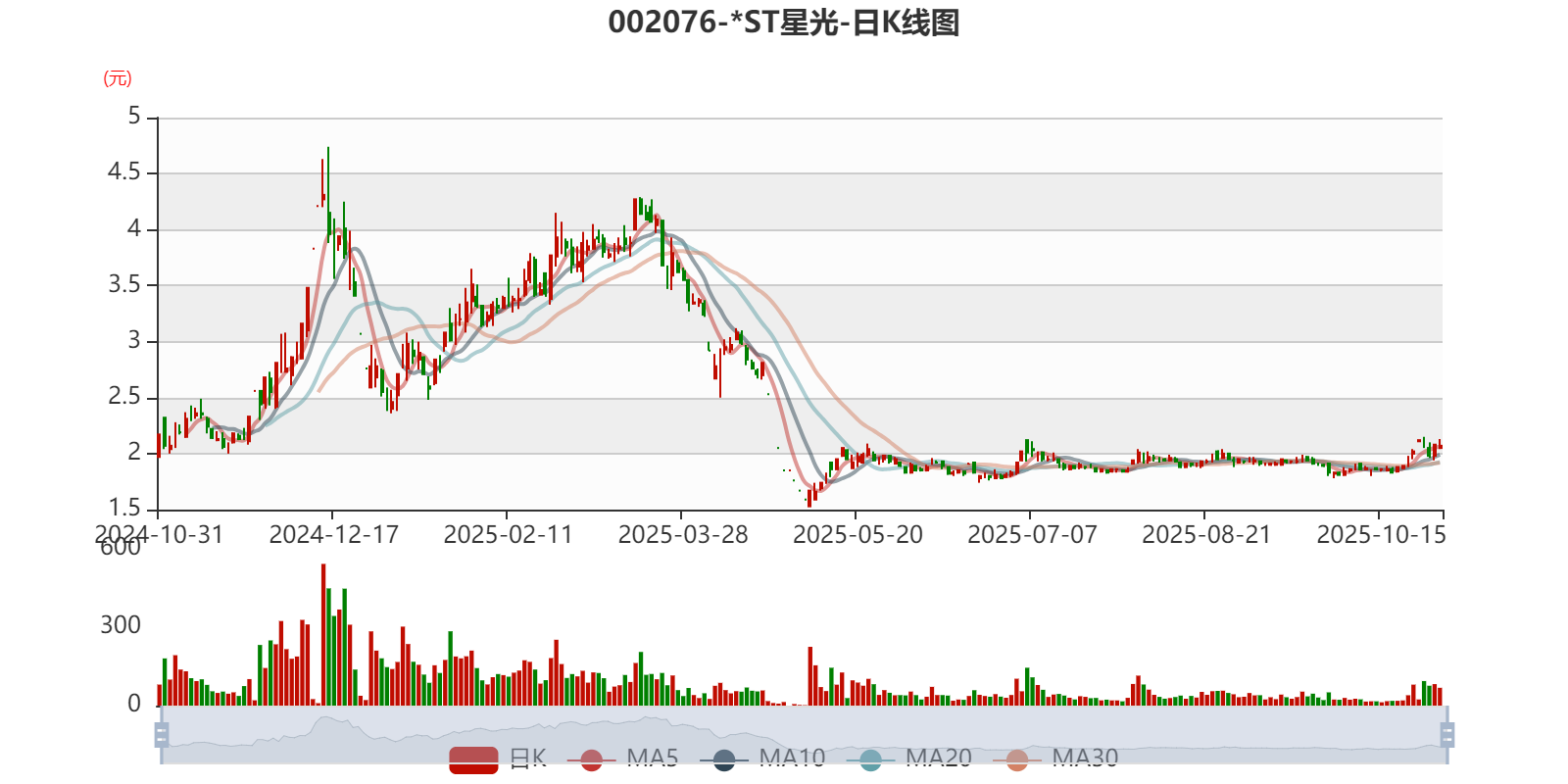 以10月30日收盘价计算,*ST星光目前市盈率(TTM)约为-89.25倍,市净率(LF)约7.29倍,市销率(TTM)约9.7倍。