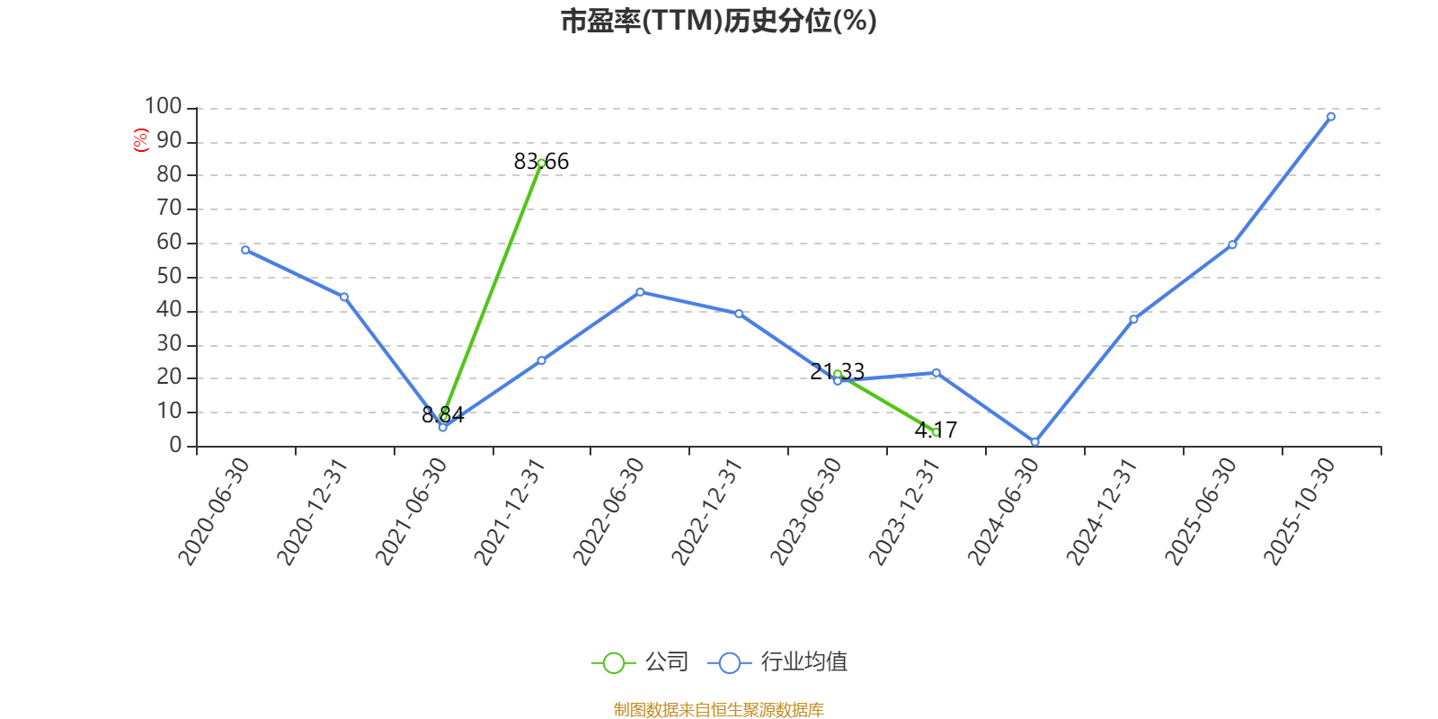 市盈率、市净率为负时,不显示当期分位数,会导致折线图中断。