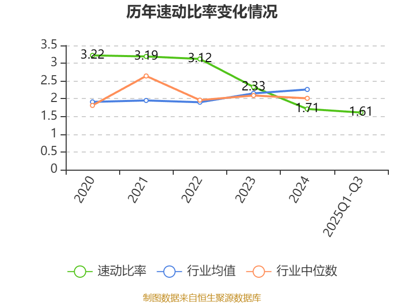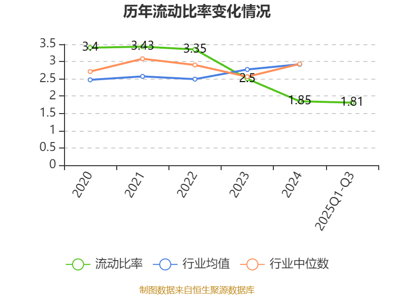 2025年前三季度,公司流动比率为1.81,速动比率为1.61。