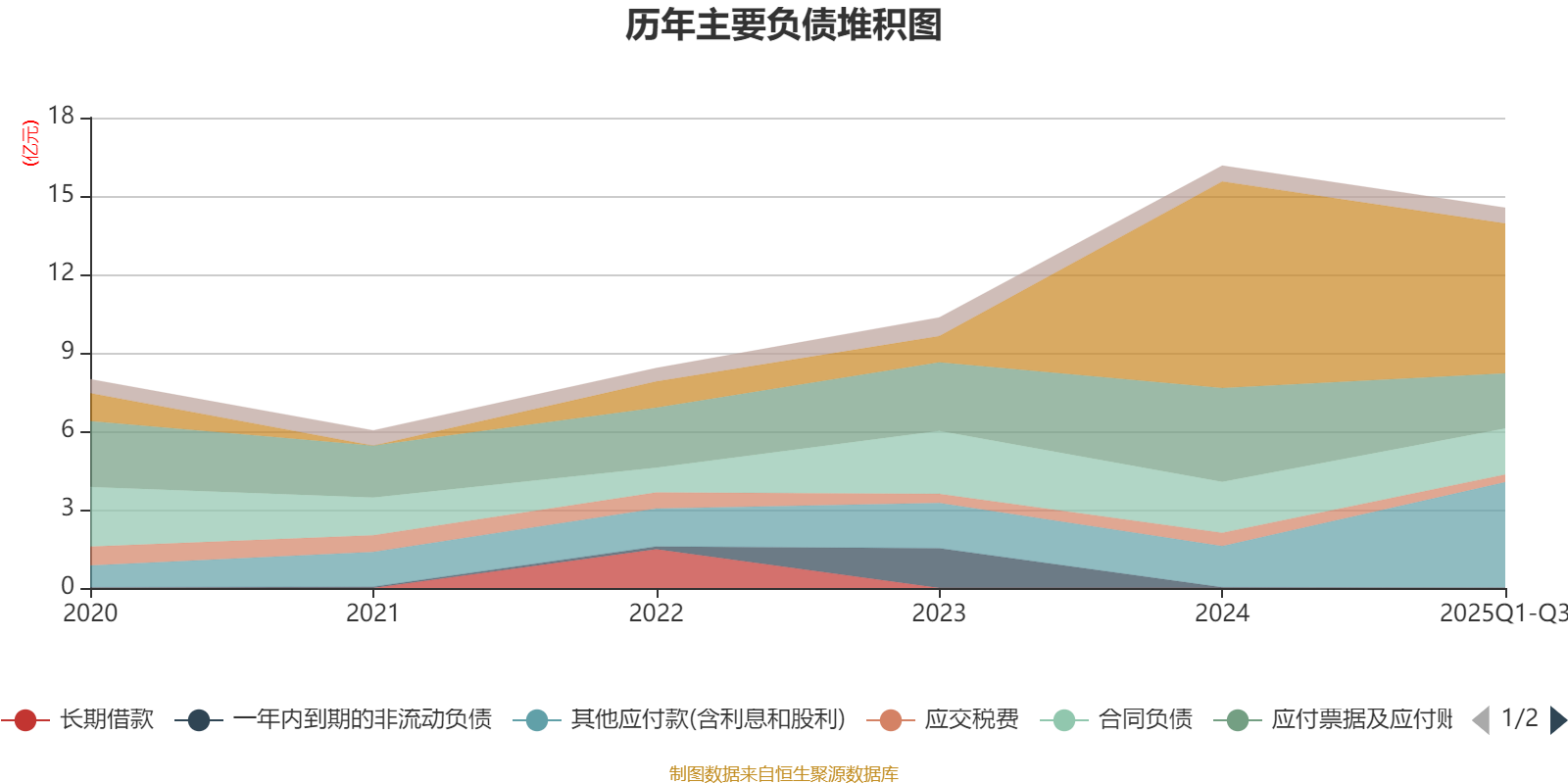 负债重大变化方面,截至2025年三季度末,公司其他应付款(含利息和股利)较上年末增加155.36%,占公司总资产比重上升5.2个百分点;短期借款较上年末减少27.48%,占公司总资产比重下降3.78个百分点;应付票据及应付账款较上年末减少41.27%,占公司总资产比重下降2.74个百分点;应交税费较上年末减少41.52%,占公司总资产比重下降0.39个百分点。
