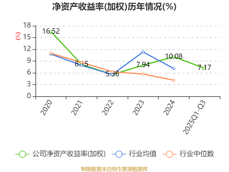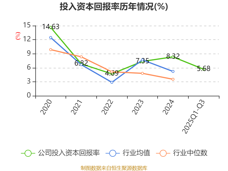 盈利能力方面, 2025年前三季度公司加权平均净资产收益率为7.17%,同比上升0.09个百分点。公司2025年前三季度投入资本回报率为5.68%,较上年同期下降0.53个百分点。
