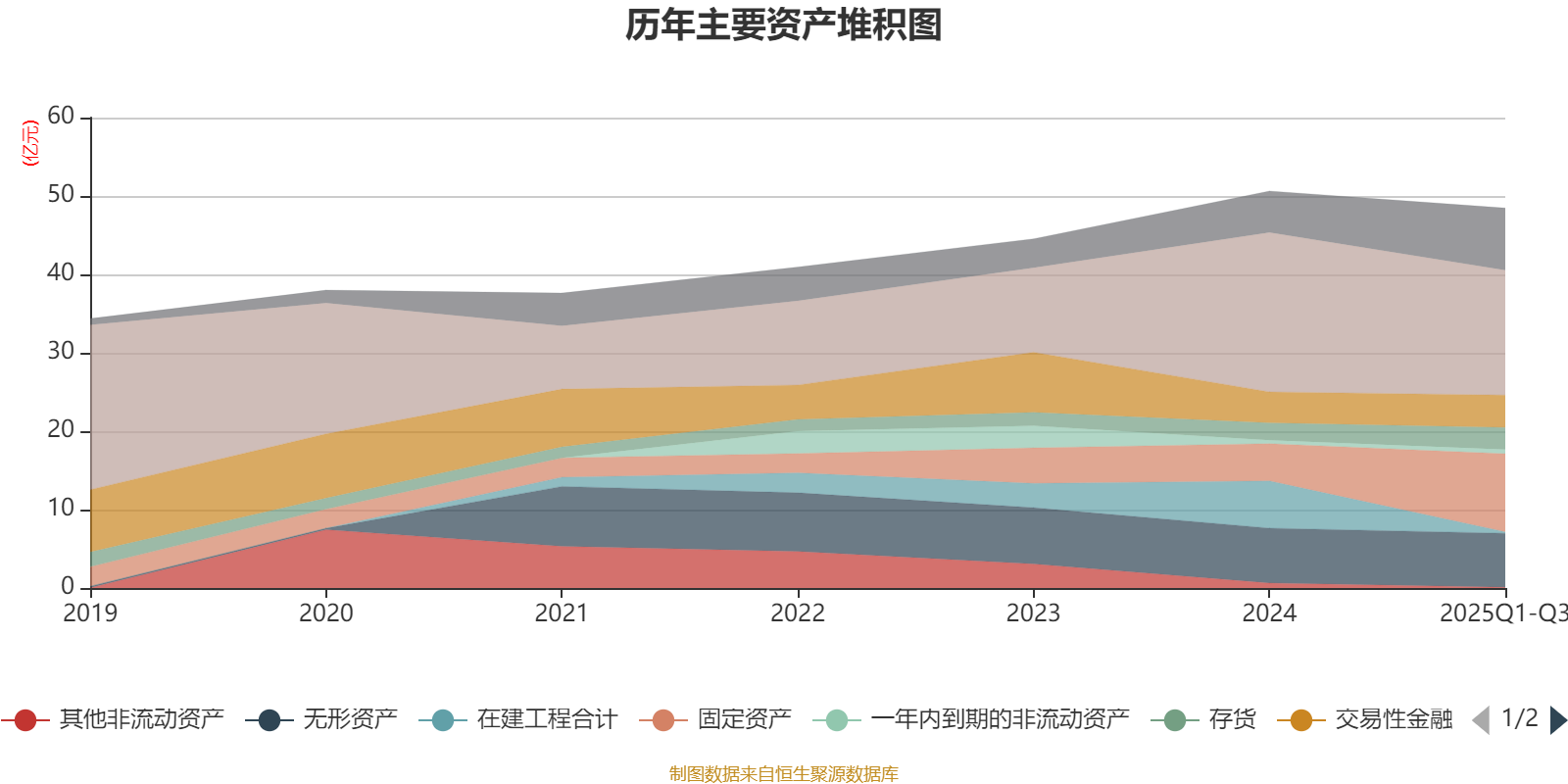 资产重大变化方面,截至2025年三季度末,公司在建工程合计较上年末减少96.84%,占公司总资产比重下降11.52个百分点;固定资产较上年末增加109.56%,占公司总资产比重上升11.17个百分点;货币资金较上年末减少21.66%,占公司总资产比重下降7.29个百分点;投资性房地产较上年末增加6364.8%,占公司总资产比重上升4.31个百分点。