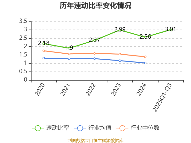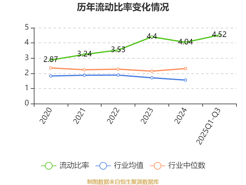 2025年前三季度,公司流动比率为4.52,速动比率为3.01。