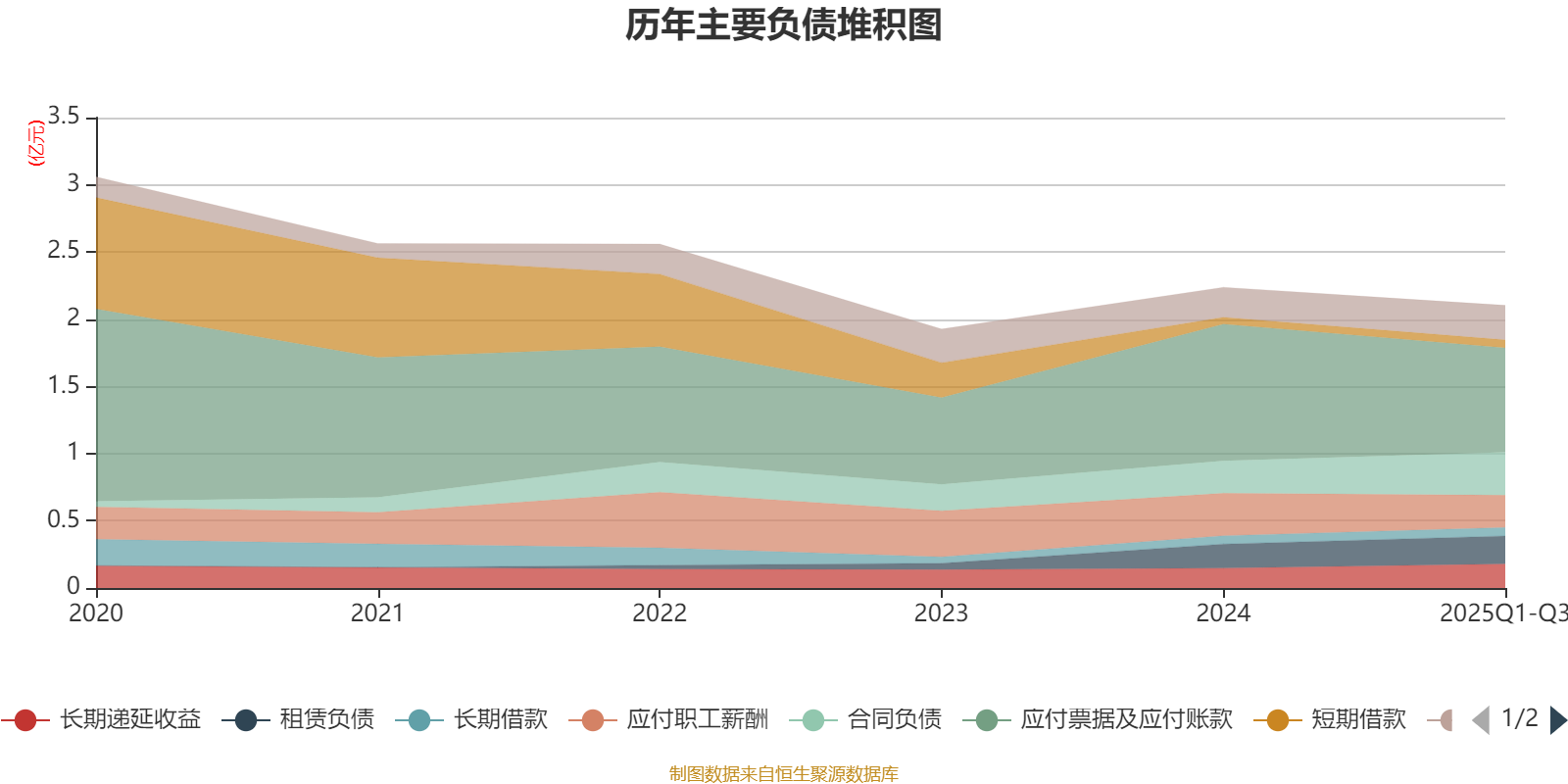 负债重大变化方面,截至2025年三季度末,公司应付票据及应付账款较上年末减少23.56%,占公司总资产比重下降2.07个百分点;应付职工薪酬较上年末减少24.08%,占公司总资产比重下降0.66个百分点;合同负债较上年末增加32.2%,占公司总资产比重上升0.55个百分点;长期递延收益较上年末增加21.03%,占公司总资产比重上升0.21个百分点。