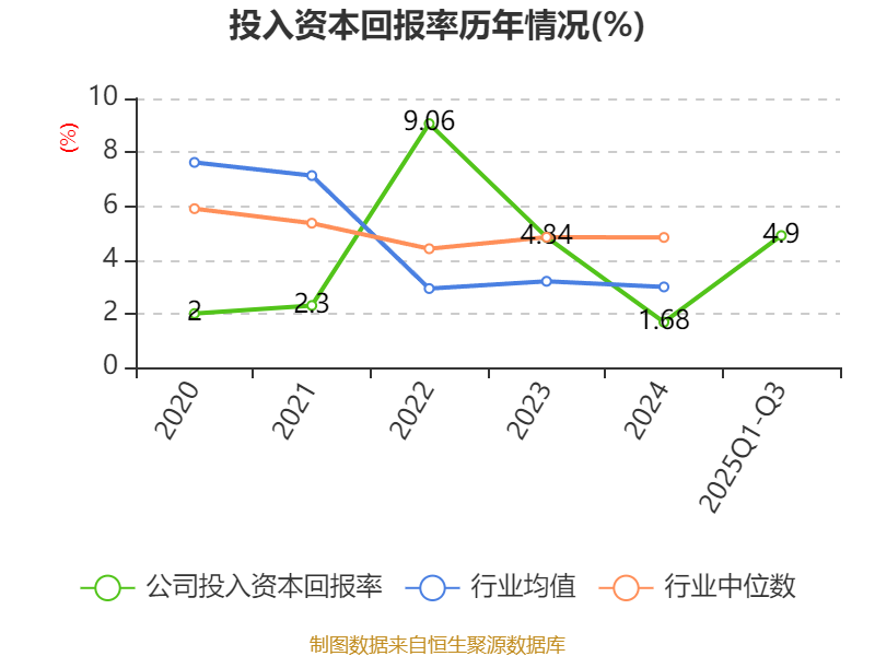 盈利能力方面, 2025年前三季度公司加权平均净资产收益率为4.89%,同比上升3.26个百分点。公司2025年前三季度投入资本回报率为4.9%,较上年同期上升3.39个百分点。