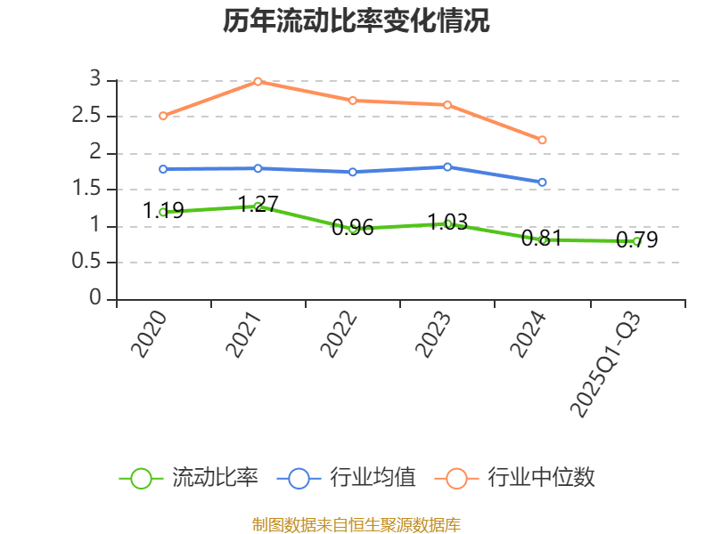 2025年前三季度,公司流动比率为0.79,速动比率为0.3。