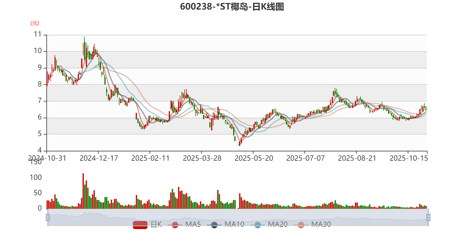 以10月30日收盘价计算,*ST椰岛目前市盈率(TTM)约为-22.22倍,市净率(LF)约29.1倍,市销率(TTM)约15.59倍。