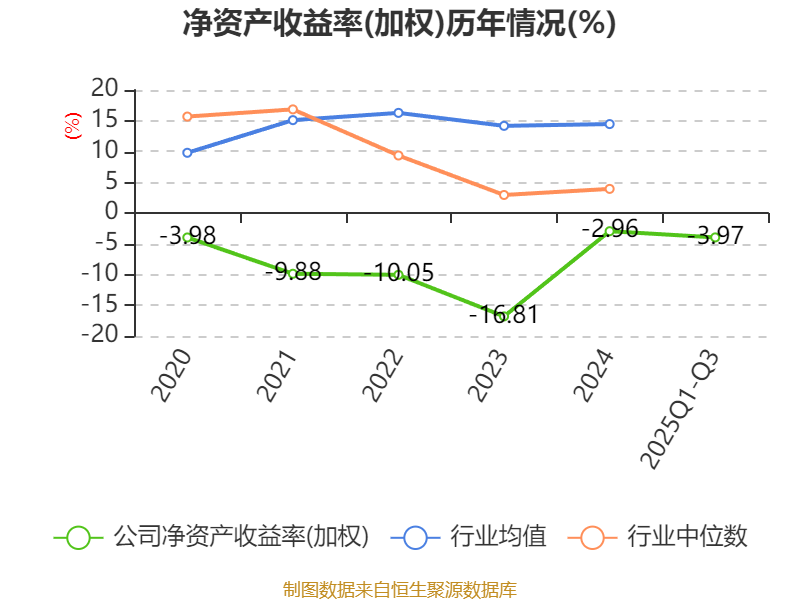 盈利能力方面, 2025年前三季度公司加权平均净资产收益率为-3.97%,同比下降1个百分点。公司2025年前三季度投入资本回报率为-1.63%,较上年同期上升0.28个百分点。