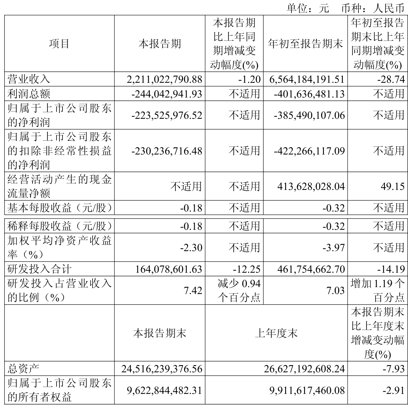 中证智能财讯孚能科技(688567)10月31日披露2025年第三季度报告。前三季度公司实现营业总收入65.64亿元,同比下降28.74%;归母净利润亏损3.85亿元,上年同期亏损3.04亿元;扣非净利润亏损4.22亿元,上年同期亏损3.18亿元;经营活动产生的现金流量净额为4.14亿元,同比增长49.15%;报告期内,孚能科技基本每股收益为-0.32元,加权平均净资产收益率为-3.97%。