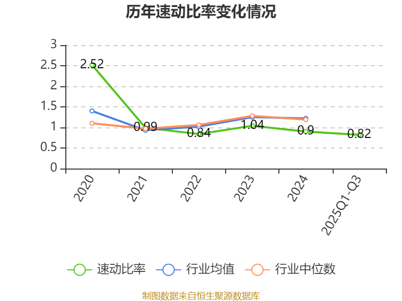 2025年前三季度,公司流动比率为1.15,速动比率为0.82。