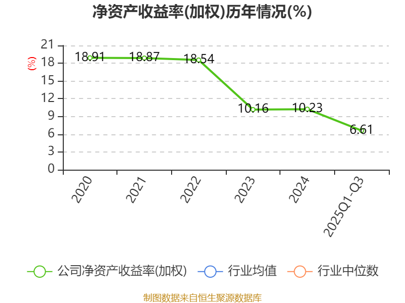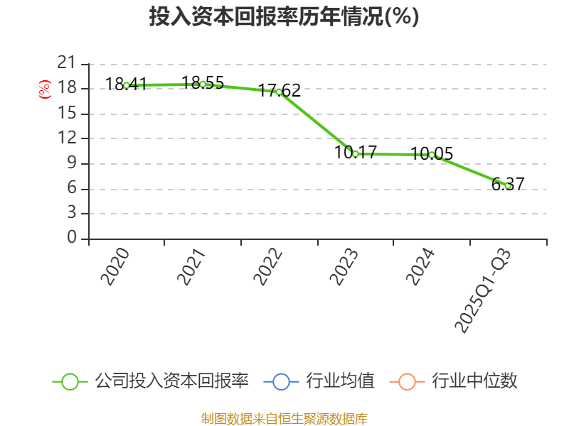 盈利能力方面, 2025年前三季度公司加权平均净资产收益率为6.61%,同比下降1.86个百分点。公司2025年前三季度投入资本回报率为6.37%,较上年同期下降2.15个百分点。