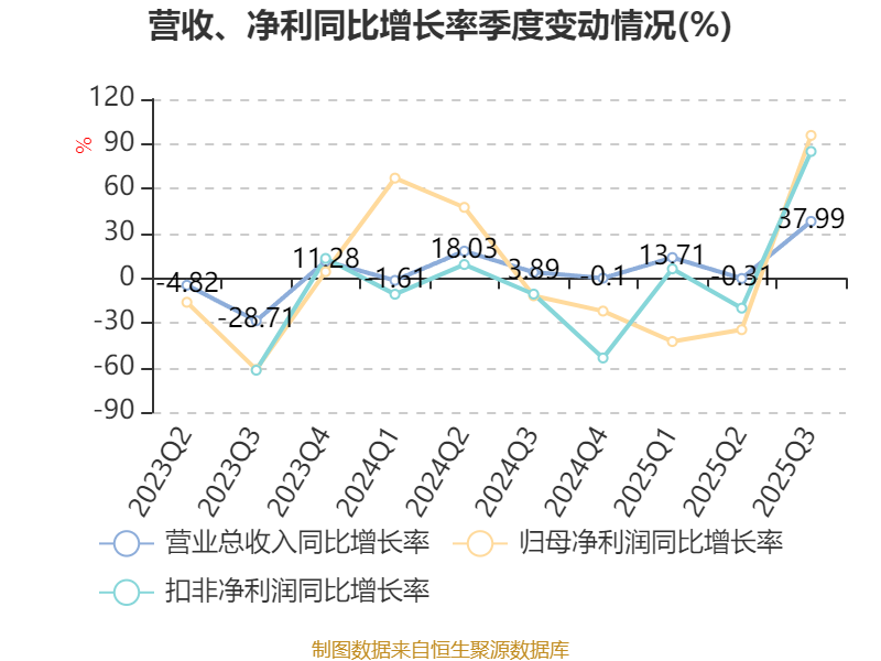 负债重大变化方面,截至2025年三季度末,公司短期借款较上年末增加226.18%,占公司总资产比重上升3.63个百分点;应付票据及应付账款较上年末增加37.76%,占公司总资产比重上升0.88个百分点;一年内到期的非流动负债较上年末增加434.67%,占公司总资产比重上升0.65个百分点;租赁负债占公司总资产的0.41%,上年末为0。