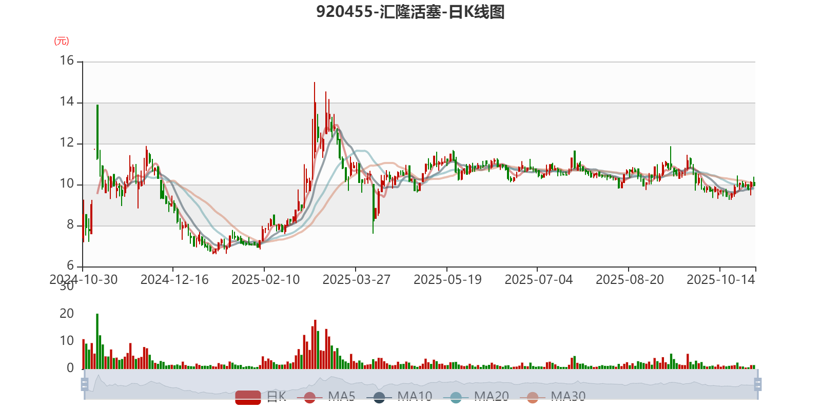 以10月30日收盘价计算,汇隆活塞目前市盈率(TTM)约为61.82倍,市净率(LF)约5.2倍,市销率(TTM)约11.22倍。