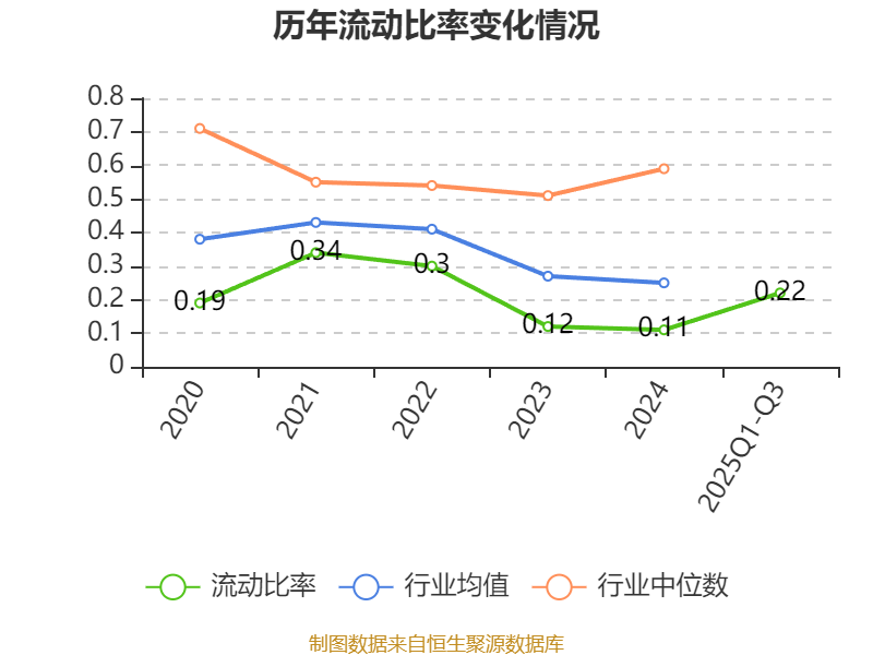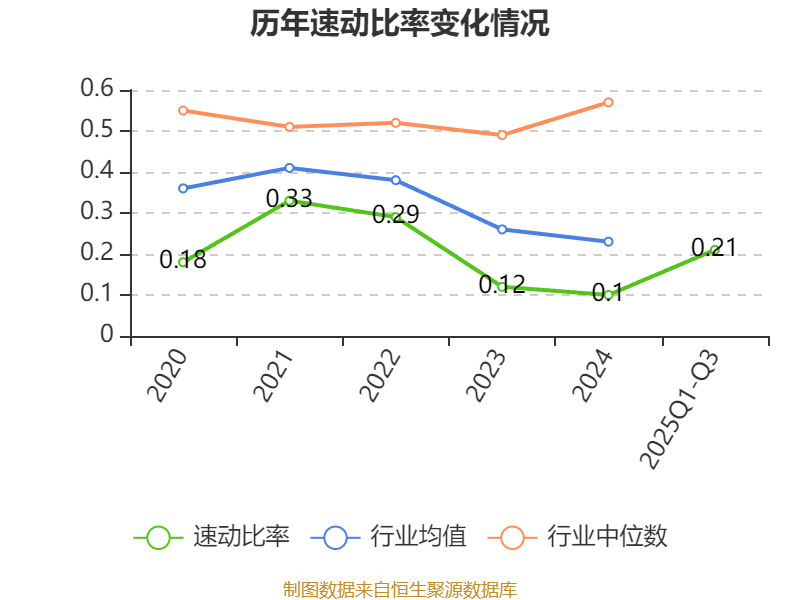 2025年前三季度,公司流动比率为0.22,速动比率为0.21。