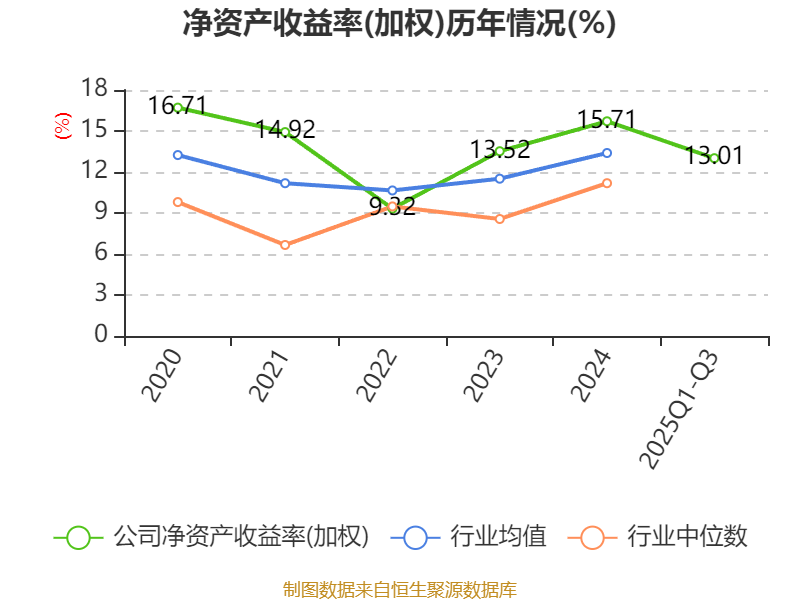 盈利能力方面, 2025年前三季度公司加权平均净资产收益率为13.01%,同比下降0.53个百分点。公司2025年前三季度投入资本回报率为6.65%,较上年同期下降0.14个百分点。