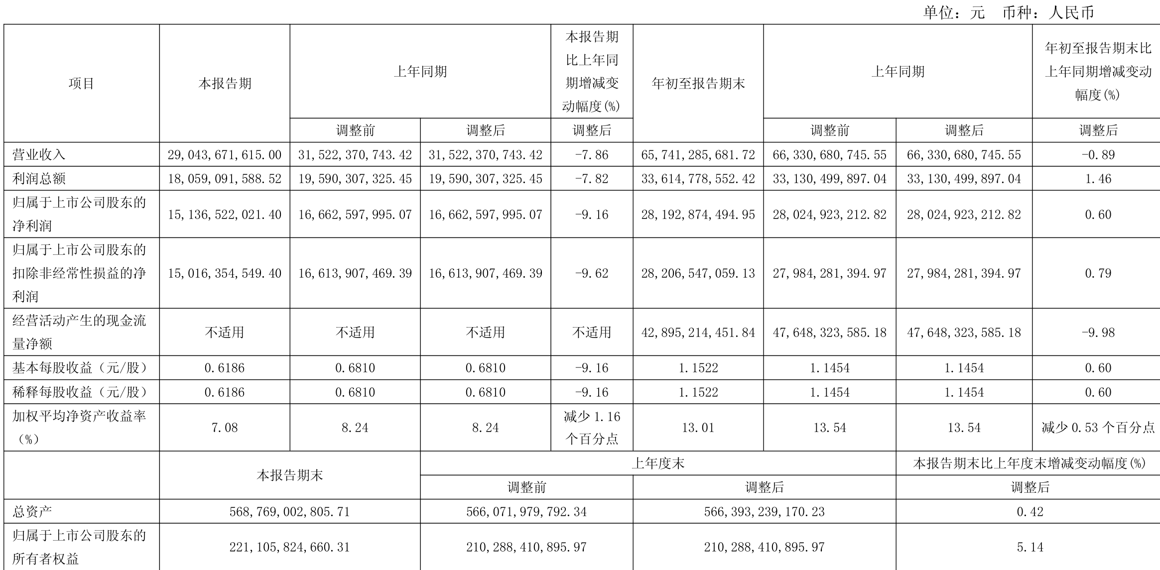 中证智能财讯长江电力(600900)10月31日披露2025年第三季度报告。前三季度公司实现营业总收入657.41亿元,同比下降0.89%;归母净利润281.93亿元,同比增长0.60%;扣非净利润282.07亿元,同比增长0.79%;经营活动产生的现金流量净额为428.95亿元,同比下降9.98%;报告期内,长江电力基本每股收益为1.1522元,加权平均净资产收益率为13.01%。