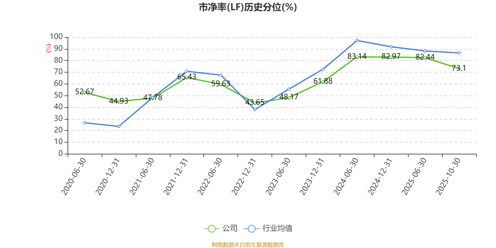 市盈率、市净率为负时,不显示当期分位数,会导致折线图中断。