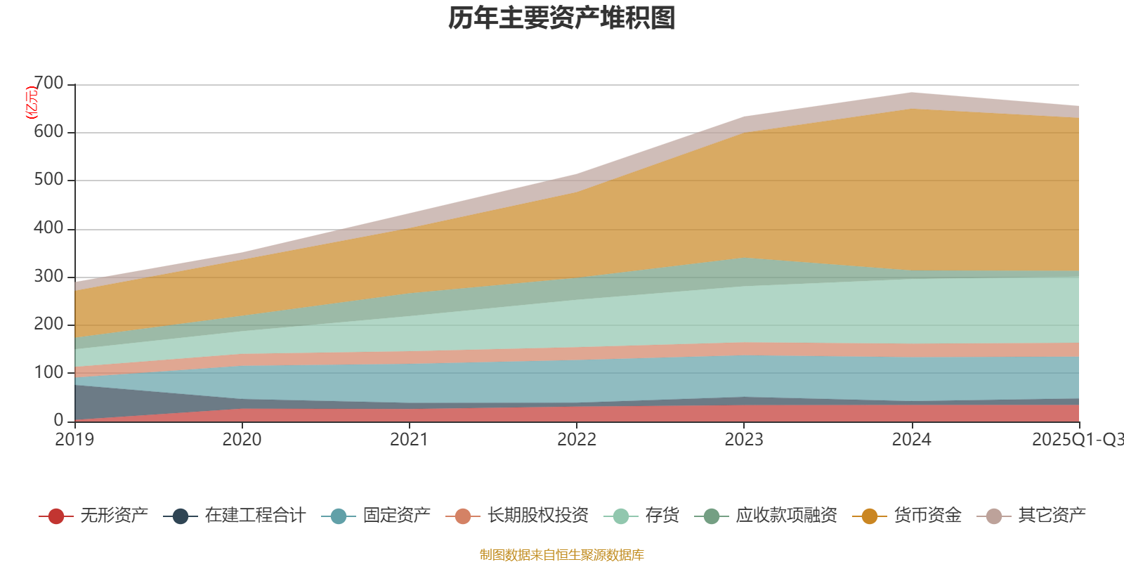 资产重大变化方面,截至2025年三季度末,公司交易性金融资产合计较上年末减少58.11%,占公司总资产比重下降1.4个百分点;存货较上年末增加2.65%,占公司总资产比重上升1.39个百分点;在建工程合计较上年末增加67.55%,占公司总资产比重上升0.88个百分点;应收款项融资较上年末减少33.2%,占公司总资产比重下降0.8个百分点。