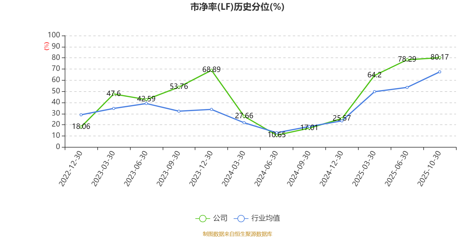 市盈率、市净率为负时,不显示当期分位数,会导致折线图中断。